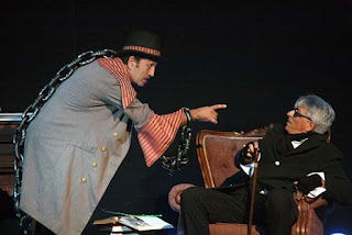 Tres personas para hacer todos los personajes, o mejor dicho dos, porque Sánchez encarnó al señor Scrooge y el resto de papeles recayeron en sus dos compañeros. Este montaje es del propio autor y ellos lo adaptaron.